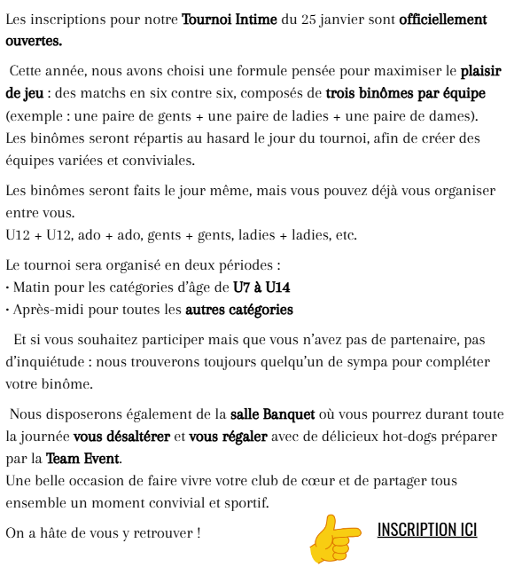 les catégories concernées :U7, U11B, U12G, U19, Dames, Ladies, Gents et bien entendu Famille et Amis –